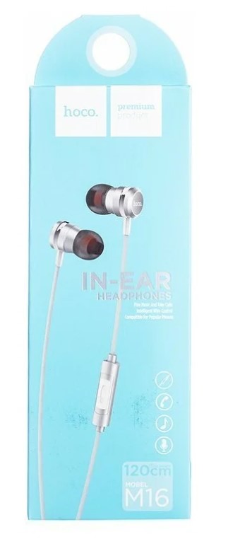 | Комплектация | Гарнитура Hoco M16 серебро / Комплект сменных амбюшор - 1 шт. / Документация |