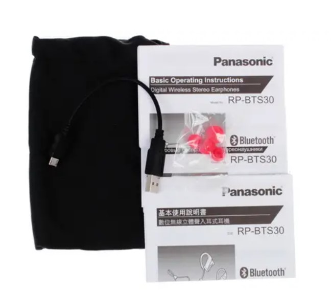 | Комплектация | Наушники Panasonic RP-BTS30GC-R красный / Комплект сменных амбюшор - 1 шт. / Чехол - 1 шт. / USB-кабель для зарядки - 1 шт. / Документация |