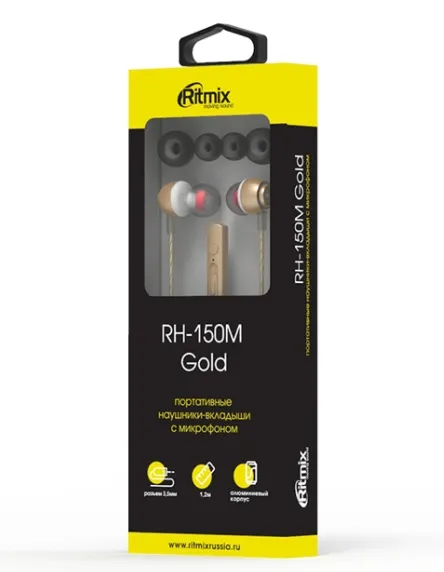 | Комплектация | Гарнитура Ritmix RH-150M / Сменные амбушюры - 3 пары / Документация |