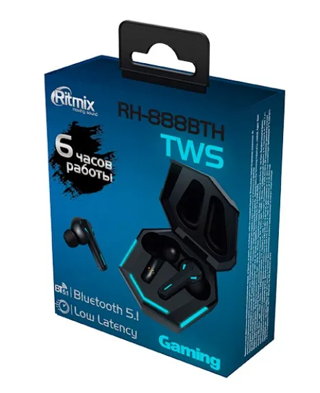 | Комплектация | Наушники-вкладыши игровые беспроводные Ritmix RH-888BTH TWS черный / Комплект сменных амбюшор - 1 шт. / Кабель питания - 1 шт. / Футляр USB - 1 шт. / Документация |
