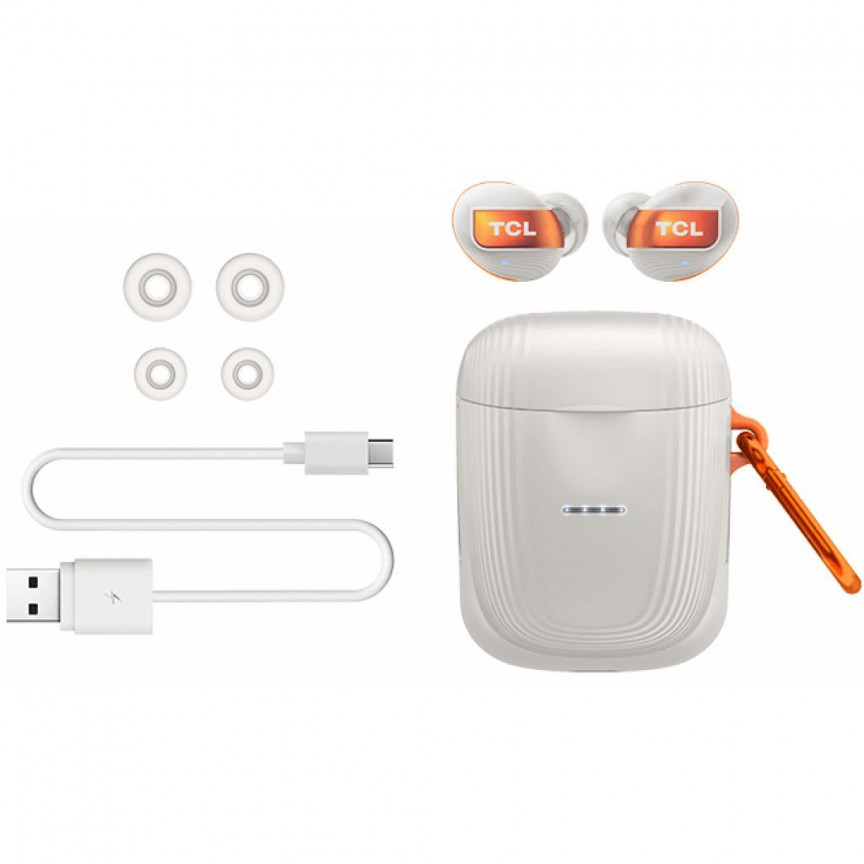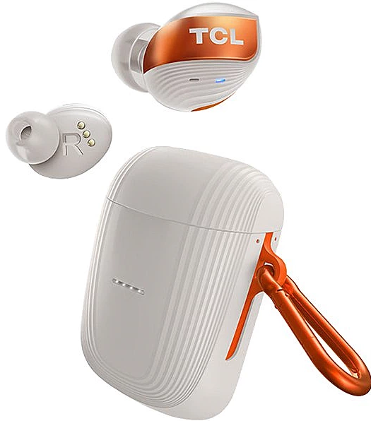 Наушники TCL ACTV500TWS изготавливаются с долговечным и прочным корпусом. Окрашиваются матовой белой и оранжевой краской. Предусмотрены светодиодные индикаторы для отображения состояния заряда батареи. Обладают показателем чувствительности в 100 дБ, а также внутренним сопротивлением 14 Ом. Имеется стандартный двусторонний разъем USB-C.