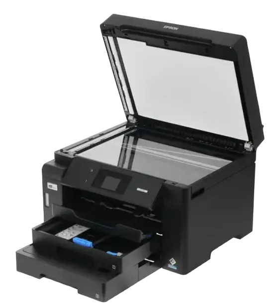 МФУ Epson M15140 изготавливается с небольшими размерами. Выполнен в утилитарном дизайне. Интегрирован качественный цветной экран для удобной настройки параметров. Интегрирован адаптер беспроводных сетей Wi-Fi для подключения мобильных устройств и локальной сети. Также встроен порт USB для проводного подключения к системным блокам и лэптопам.