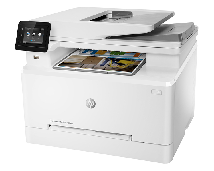 МФУ HP Color LaserJet Pro MFP M283fdn выполнен в надежном пластиковом корпусе и имеет цветной дисплей с диагональю 2.7 дюйма для настройки параметров печати. Встроены лотки для автоподачи оригинальных материалов на сканер, а также для чистых листов. Имеется возможность подключения к локальной сети и удаленного управления по приложению HP Smart. Также встроен порт USB 2.0 для проводного подключения к компьютерам.