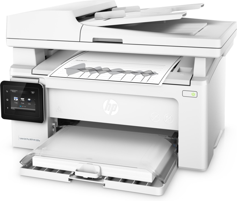 Многофункциональный принтер HP LaserJet Pro M130fw оснащен технологией автоматического включения и выключения, которая позволяет экономить на электроэнергии. Подходит для работы со всеми популярными форматами бумаги: матовой и глянцевой, карточек, этикеток и конвертов. Рекомендуемая плотность носителей — 60–163 г/м2.