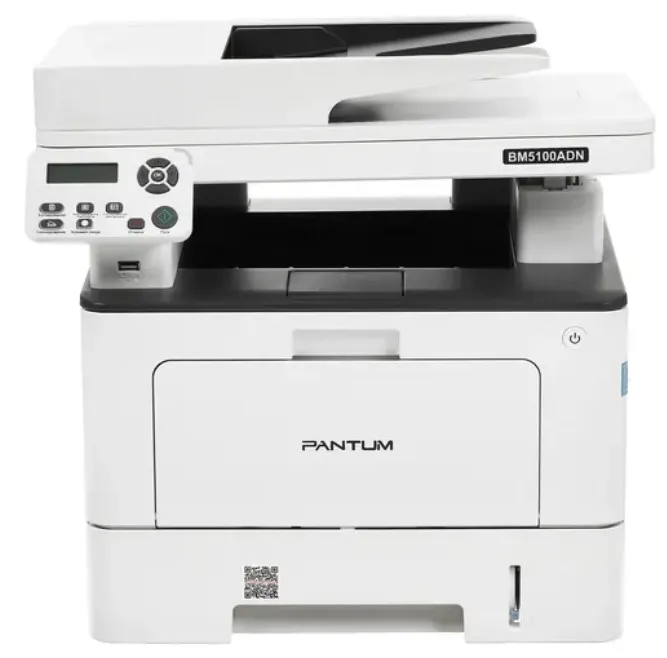 МФУ Pantum BM5100ADN изготавливается с классическим дизайном. Выполнено с корпусом из надежного и прочного полимерного пластика. Окрашивается в белый матовый цвет. Удобство управления обеспечивает небольшой дисплей и ряд кнопок. Встроен надежный сканер для быстрого копирования и оцифровывания источников. Для подключения к локальной сети предусмотрен стандартный интерфейс типа RJ-45. Для настройки имеется классический порт типа USB.