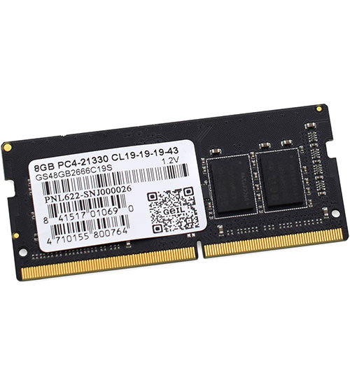 Модуль ОЗУ Geil GS48GB2666C19S 8Gb представляет собой компактное и производительное изделие среднего ценового сегмента. Применяется для работы в составе современных ноутбуков и моноблоков. Значительно ускоряет работу приложений редактирования видеороликов и фотографий, позволяет использовать ресурсоемкие системные утилиты и профессиональные программные комплексы. Общая емкость ячеек составляет 8 Гб. Работает на стандартной частоте 2666 МГц. Поддерживает возможность настройки параметров в ручном режиме на некоторых системных платах. Подходит для игры в видеоигровые проекты с высокой частотой обновления кадра, а также запуска прямых эфиров.