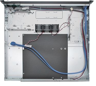 Серверное шасси Chenbro RM14300S2 выполнено из надежного металлического сплава, окрашенного в серебристый цвет, занимает один слот в серверной стойке. В качестве системы охлаждения имеются три турбированных вентилятора с размерами 40 на 20 мм. Для подключения внешних накопителей установлены корпусные интерфейсы USB 3.0. Также на внешнюю панель вынесены кнопки включения и перезагрузки устройства.