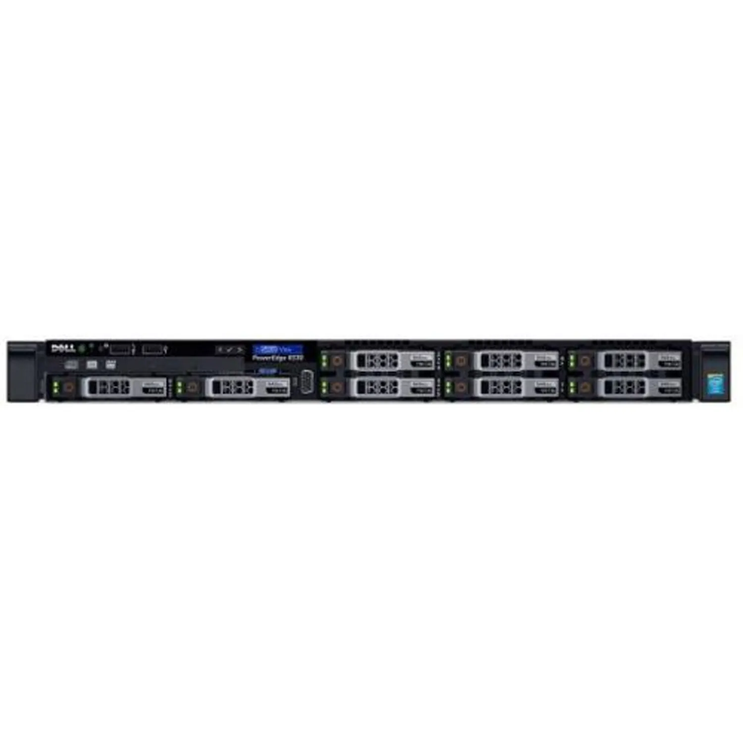 Dell PowerEdge R330 функционирует на блоке питания с мощностью 350 Вт. В сервер можно установить до 8 жестких дисков формата SAS/SATA. Для подключения к сети используется порт Rj45 с предельной скоростью 1000 Мбит/с.