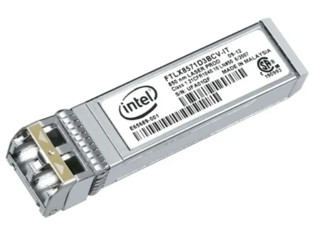 Трансивер Intel Ethernet SFP+ SR E10GSFPSR представляет собой высокоэффективное устройство для передачи данных по сети на высокой скорости. Трансивер оснащен портом 10GBASE-SR и подключается к многомодовому оптоволоконному кабелю с дуплексным коннектором LC. Модель поддерживает высокую скорость передачи данных до 10 Гбит/сек. В основе модели находится лазер с длиной волны в 850 нм. Эта волна используется при передаче данных на короткие расстояния. Максимальная длина кабеля для передачи данных может составлять 300 метров. Это отличное решение для передачи данных внутри одного здания при построении локальной сети разного назначения.