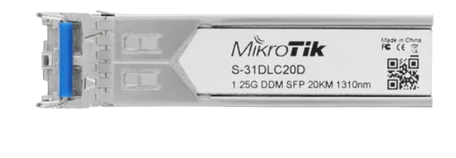 Трансивер MikroTik S-31DLC20D с разъемом Duplex LC предназначен для передачи данных со скоростью 1.25 Гбит/сек по одномодовому оптическому волокну (SM). Работает в спектре 1310 нм. Данная модель приемопередатчика способна обеспечить соединение на расстояние до 20 километров, с функцией контроля DDM.