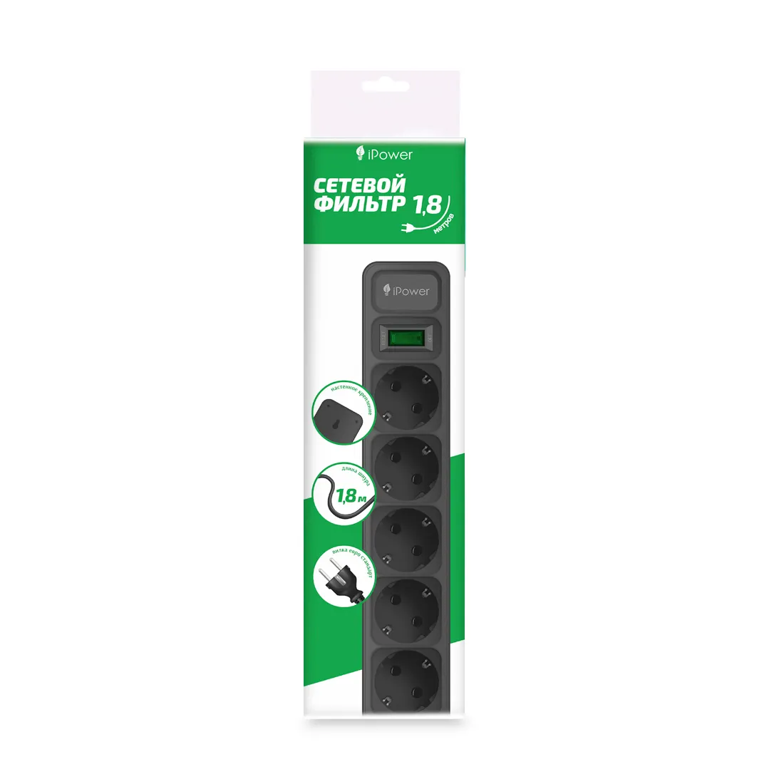 Сетевой фильтр iPower iPEO5S защитит подключенную к нему технику от скачков напряжения или короткого замыкания. Кроме того, благодаря шнуру длиной 5 метров вы сможете подключить к городской электросети технику, даже если она находится вдалеке от стационарной розетки. Длина шнура 1,8 метра. На корпусе сетевого фильтра есть 5 розеток.
