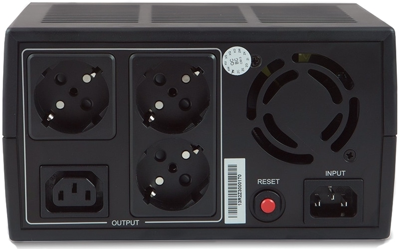 Стабилизатор напряжения CyberPower AVR1500E отличается высокой мощностью в 1500 Вт, что позволяет защитить энергоемкие ресурсы. Соединительные разъемы, расположенные на фронтальной стороне корпуса, представлены в виде 3 розеток типа Schuko и 1 разъема IEC C13. Здесь же находится кнопка Reset, служащая для сброса настроек или для перезагрузки системы при наличии сбоев.