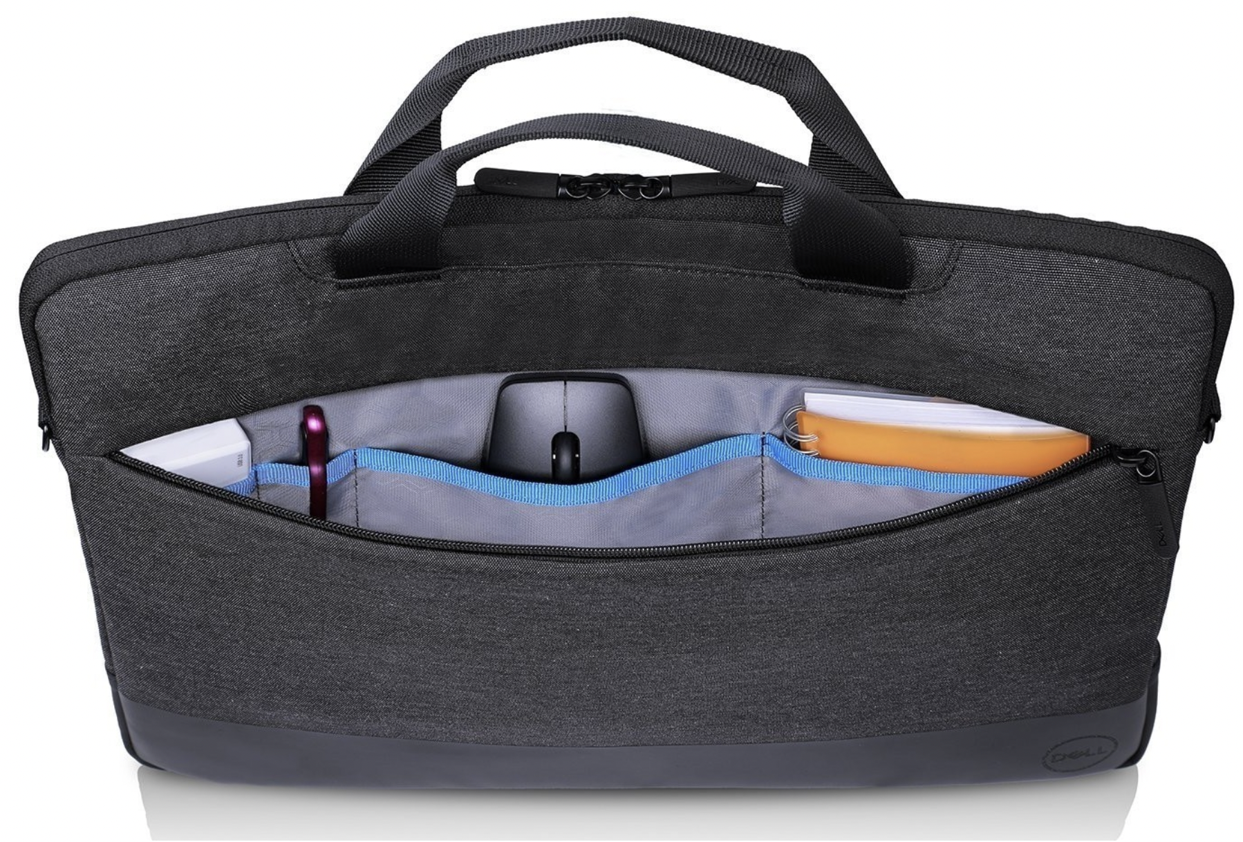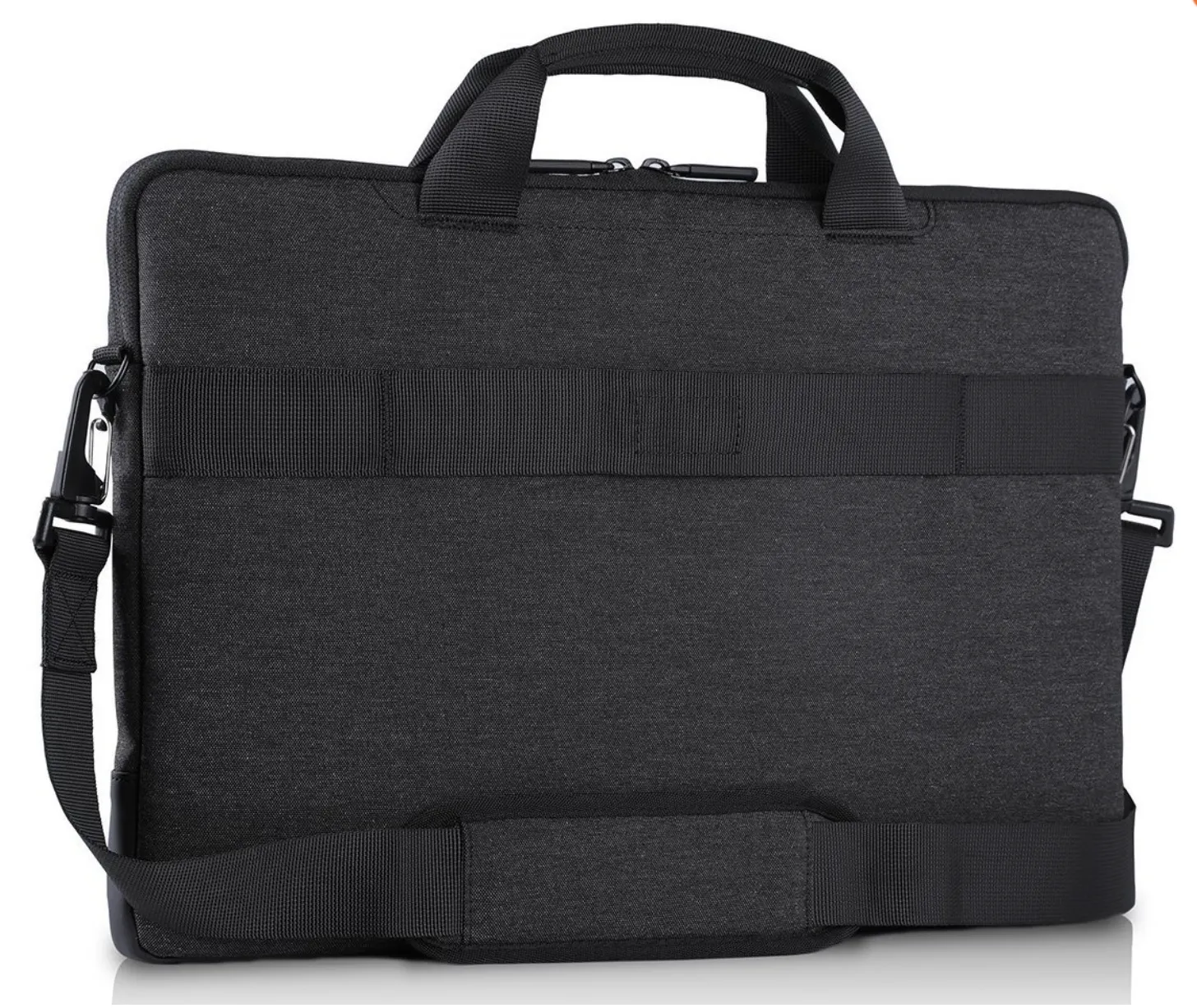 Dell Pro Sleeve – небольшая, но довольно вместительная сука для ноутбуков с диагональю экрана до 13 дюймов. Внутри большого отделения предусмотрены крепления для более надежной фиксации ноутбука. На лицевой стороне дополнительный карман на молнии с отделениями для хранения мелких предметов: компьютерной мыши, ручки или зарядки. У сумки есть удобный широкий плечевой ремень и небольшие ручки. Есть крепления на ручку чемодана, которые обязательно пригодятся во время путешествий. Сумка подходит для повседневного использования, так как выполнена из практичного и устойчивого к внешним воздействиям нейлона.