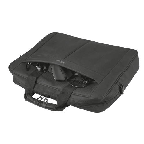 Сумка Trust Primo 16" представляет собой качественное и удобное решение среднего ценового сегмента. Применяется для хранения и переноски различных ультрабуков и лэптопов, а также планшетов. Имеются мягкие вставки для защиты корпуса устройств от царапин и сколов. Содержит дополнительные отделения для аксессуаров и зарядных устройств. Изготавливается из прочного и долговечного полиэстера. Окрашена в черный цвет.
