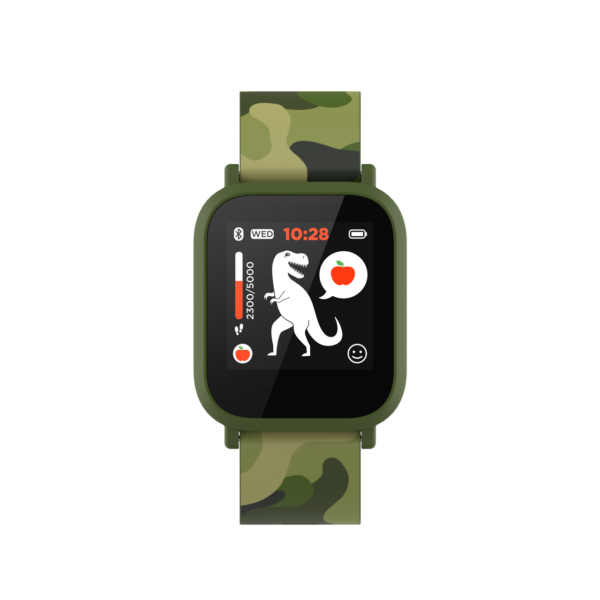 Умные часы My Dino KW-33 от Canyon разработаны для детей младшего школьного возраста и станут полезным гаджетом, который поможет следить за физической активностью. Часы будут в ненавязчивой форме стимулировать больше двигаться. В часах есть виртуальный динозавр-питомец, которого требуется кормить виртуальной пищей. Еда для питомца зарабатывается при выполнении определенных физических занятий и активностей. А если хочется отдохнуть, можно поиграть в одну из двух развивающих игр и потренировать логику.