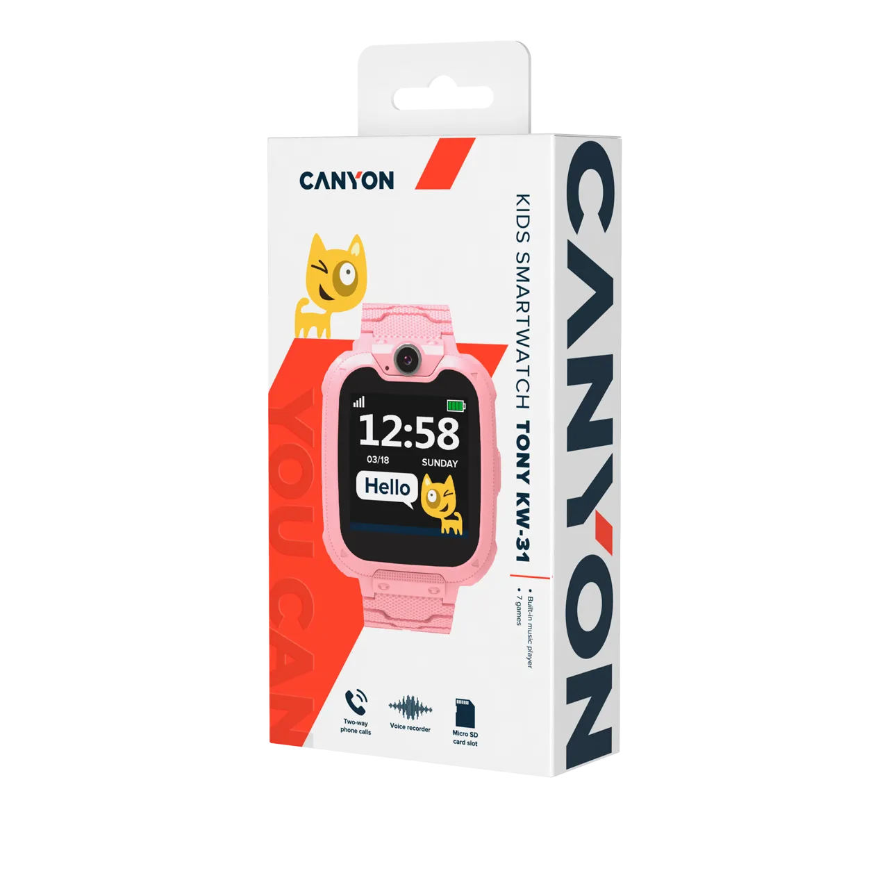 Умные часы Canyon Tony KW-31 розовые изготавливаются с ярким стильным дизайном. Оснащаются надежным гипоаллергенным ремешком с регулировкой размера. Предусмотрена система защиты от попадания воды и пыли по стандарту IP67. Поддерживает установку micro-SIM. Имеется аккумуляторная батарея с емкостью 380 мА/ч. Возможен монтаж карт памяти стандарта MicroSD с емкостью до 32 Гб для хранения фотографий и музыкальных треков.