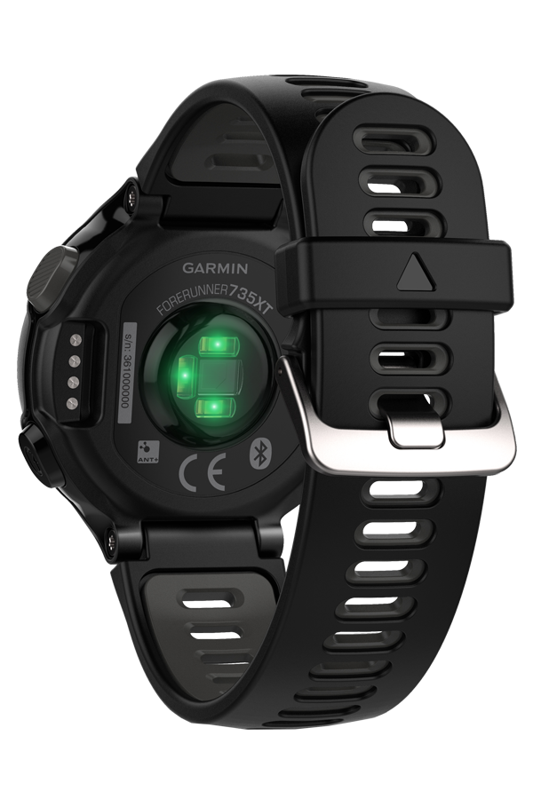 Умные часы Garmin Forerunner 735XT HRM-Run черные выполнены в высококачественном корпусе из полимерного армированного материала, защищенного от воздействия влаги по сертификату WR50. Позволяют погружаться на глубину до 50 метров. Сопрягаются с мобильным приложением для синхронизации и составления карты тренировок. Предустановлен мягкий ремешок из силикона.