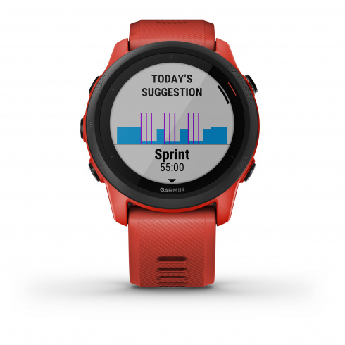 Умные часы Garmin Forerunner 745 красные представляют собой современный аксессуар, выполненный в элегантном дизайне. Применяются для отображения различных уведомлений с мобильных устройств, отслеживания качества сна и проведения разнообразных физических тренировок. Встроены сенсоры пульса, датчики высоты и положения в пространстве, также модуль геолокации для точного определения пройденного расстояния, сожженных килокалорий. Установлен дисплей с диагональю 1.2 дюйма и разрешением 240 на 240 пикселей. Имеется яркая подсветка экрана.