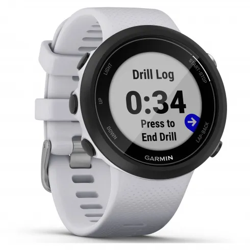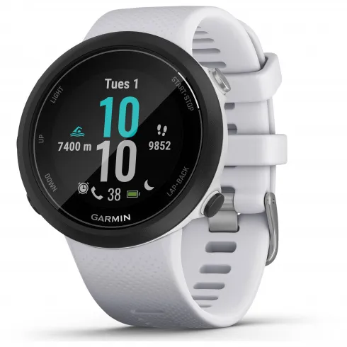 Умные часы Garmin Swim 2 белые представляют собой современное высокотехнологичное устройство, предназначенное для использования во время занятий водными видами спорта. Имеется высококачественный и яркий 1.04 дюймовый дисплей с разрешением 208 на 208 пикселей, который постоянно работает в активном режиме. Система управления представлена пятью кнопками, что позволяет комфортно использовать устройство под водой. Встроен точный пульсометр, также работающий под водой, а датчик высоты и акселерометр позволяют записывать физиологические показатели для оптимизации тренировок. Имеется геолокационный модуль, работающий на открытой воде.
