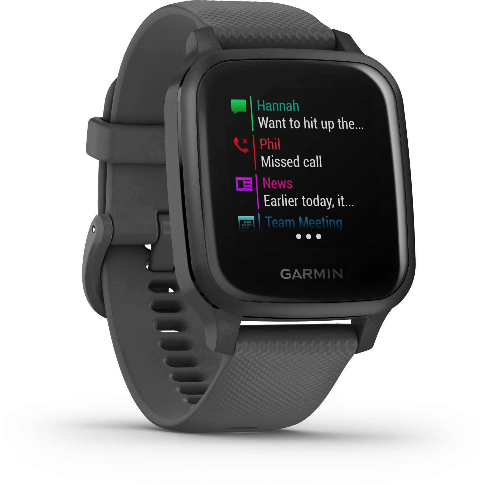 Умные часы Garmin Venu Sq серого цвета незаменимы для активных пользователей, занимающихся спортом и следящих за своим здоровьем. С помощью этих многофункциональных фитнес-часов вы сможете отслеживать важные показатели здоровья и контролировать свою физическую активность. В часах есть 20 программ тренировок по разным видам спорта от бега до велоспорта, с помощью которых можно увидеть, есть ли прогресс у ваших тренировок и посмотреть динамику роста.