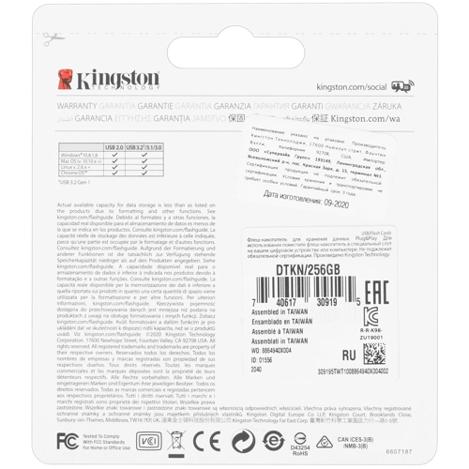 | Комплектация | Kingston DTKN/256GB |