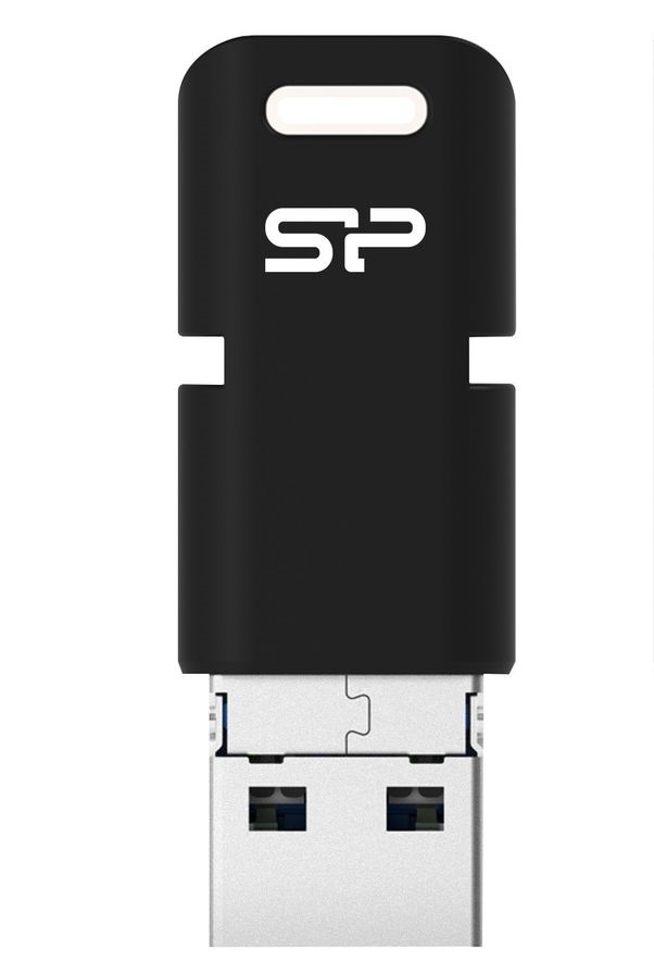 USB-накопитель Mobile C50 от компании Silicon Power относится к универсальным моделям, так как поддерживает передачу данных сразу через три разных разъема. Есть разъем USB Type A, Type-C и micro-USB, чтобы накопитель был совместим с ноутбуком, планшетом, смартфоном или компьютером. Объема в 32 ГБ хватит для большого количества фото, текстовых файлов или видео роликов. Устройство имеет компактные размеры, на корпусе есть отверстие для ремешка или цепочки, чтобы вы могли зафиксировать накопитель на кольце с ключами или в другом удобном месте.