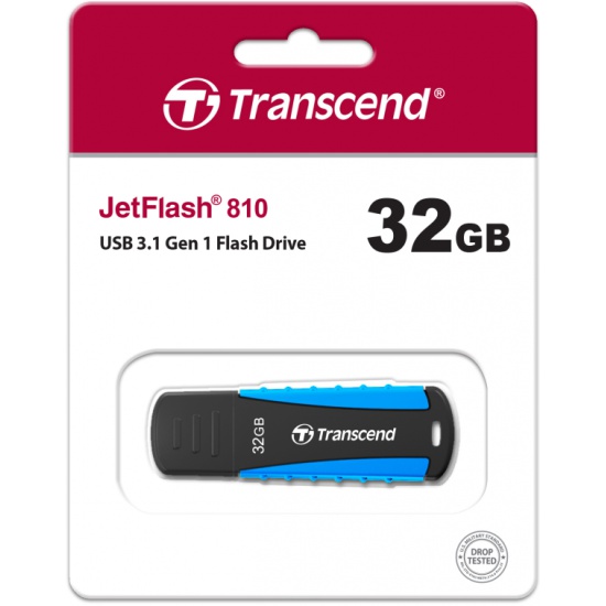 USB-накопитель Transcend JetFlash 810 32Gb изготавливается с ярким и стильным дизайном. Выполнен из прочного полимерного пластика с прорезиненными вставками. Окрашен в черный и синий цвета. Предусмотрен защитный колпачок. Оснащается контроллером, обеспечивающим возможность чтения файлов на скорости 126.3 Мб/с, а также записи – на 21.2 Мб/с. Для подключения к системным платам встроен коннектор USB 3.1 Type-A.