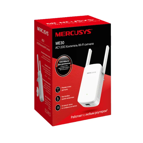 Усилитель Wi-Fi сигнала ME30 от Mercusys поможет вам с минимальными усилиями решить проблему нестабильного приема сигнала в определенных местах вашей квартиры или офиса. Также с помощью этого устройства можно расширить площадь покрытия беспроводной сети. Корпус усилителя имеет компактные размеры и вставляется в свободную розетку. С размещением устройства у вас не возникнут проблемы: достаточно наличие свободной розетки в месте, где сигнал от беспроводной сети действует слабо.