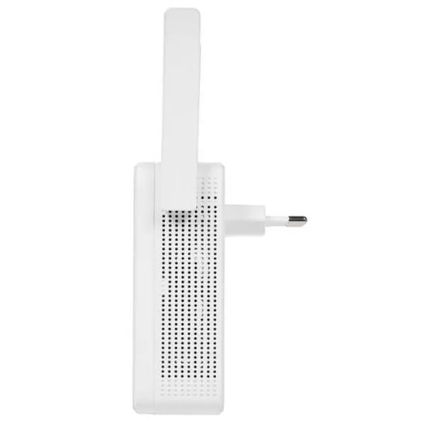На усилителе размещены две внешние антенны всенаправленного действия с мощностью передачи в 20 дБм. Также на усилителе устройства размещен 1 разъем стандарта LAN, поддерживающий передачу данных на скорости до 100 Мбит/сек, и кнопки RESET и WPS. Для подключения к роутеру необходимо вставить усилитель в розетку и активировать с помощью кнопки WPS. Через непродолжительное время устанавливается беспроводное соединение с роутером и производится усиление его сигнала.