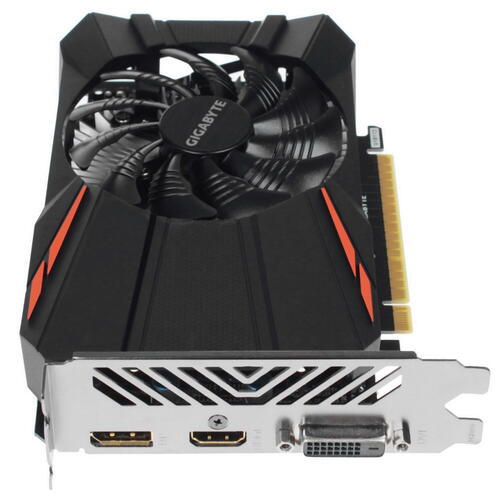 Видеоадаптер Gigabyte GV-N105TD5-4GD изготавливается с компактными размерами. Занимает 2 слота в системном блоке. Предусмотрено надежное активное охлаждение из алюминиевого сплава с тихим вентилятором. Устанавливается в свободный порт типа PCI Express 3.0 x16. Для использования мониторов имеются цифровые порты HDMI, DisplayPort и DVI-D.