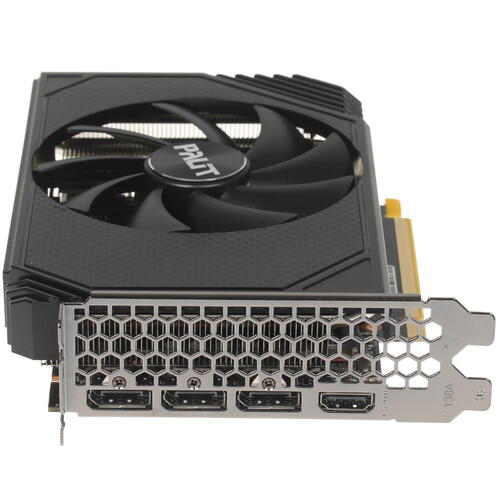 Видеоадаптер Palit GeForce PA-RTX3060 StormX 12G изготавливается в коротком двухслотовом формате. Выполнен по техническому процессу 8 нм, что понижает тепловыделение и повышает энергоэффективность изделия. Содержит активное надежное охлаждение. Для подключения разнообразных дисплеев встроены цифровые порты DisplayPort и HDMI.