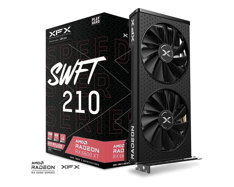 Видеокарта XFX SWFT210 RX 6600XT RX-66XT8DFDQ представляет собой современное технологичное устройство, применяемое для встраивания в мощные сборки персональных компьютеров. Позволяет проводить прямые эфиры в высоком качестве, запускать требовательные игровые проекты с высокими настройками графики, а также переносить некоторые вычисления на графический процессор. Установлено 8 ГБ надежных микросхем GDDR6, работающей на частоте 16000 МГц. Частота видеочипа составляет 2589 МГц. Позволяет проводить тонкую настройку параметров в ручном режиме. Поддерживает DirectX 12. Устанавливается в стандартный слот PCI Express 4.0 x16 на материнских платах.