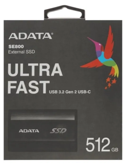 SSD диск ADATA SE800 представляет собой компактное и надежное хранилище данных. Подключается к различным моноблокам, персональным компьютерам, лэптопам, игровым консолям, а также разнообразным мобильным устройствам. Емкость ячеек составляет 512 Гб, чего достаточно для хранения видеофайлов в высоком разрешении, фотографий, музыкальных треков в формате lossless, резервных копий систем, дистрибутивов программ. Встроенный контроллер обеспечивает скорость чтения и записи в 1000 Мб/с. Для подключения используется современный интерфейс USB 3.1 Type-C, позволяющий передавать данные на скорости 5 Гбит/с.